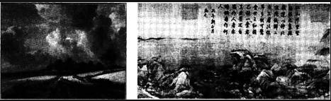 问题 下图是《麦田》(雷斯达尔——荷兰)和《千里江山图》局部(王希孟——北宋)。对比两幅绘画作品的表现手法,下面的叙述不正确的是(  )。