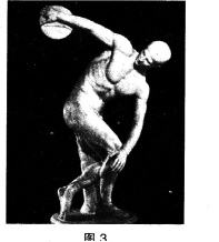 解析 米隆的《掷铁饼者》表现的是投掷铁饼的典型瞬间动作。人物的重心移至右足,让左足尖点地以支撑辅助.以头为中心两臂伸展成上下对称,从而使不稳定的躯体获得稳定感。