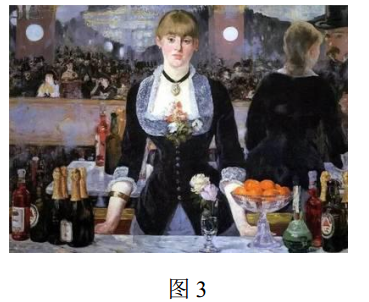解析 该画为印象主义画家马奈的代表作品《弗莉·贝尔杰酒吧》。马奈擅长用鲜明的色彩,描绘当时时髦的生活。《弗莉·贝尔杰酒吧》构图奇特,用笔流畅,色彩鲜艳,充分表现了酒吧的热络气氛与女侍的落寞感伤。