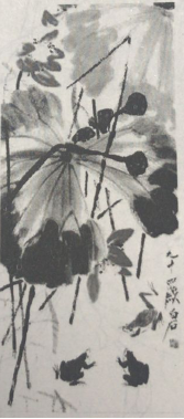 解析 图3是齐白石的作品《荷蛙》,运用了大写意的表现方法。写意俗称“粗笔”,与“工笔”对称,中国画技法名,属于简略一类的画法。要求通过简练概括的笔墨,着重描绘物象的意态神韵。齐白石作品题材充满民间情味,善画花鸟虫鱼,笔墨纵横矫健,造型简练质朴,神态活泼,色彩鲜明强烈:善于把阔笔写意花卉与纤毫毕现的草虫巧妙结合。