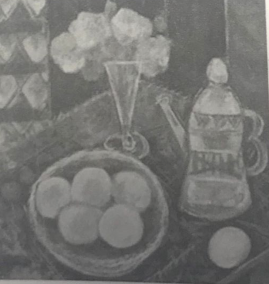 解析 图片为林风眠的静物作品。其画多方形构图,线钩色染,水墨淋漓,多画秋鹭、白鹤、枫林、睡莲、瓶花、仕女等,别具一格,代表作品有《鹭》《静物》《春晴》《江畔》《山水》《宫女与花瓶图》等。题干给出图片是一幅静物作品,与林风眠画风相近。潘天寿绘画风格是落笔大胆,点染细心,构图清新苍秀.画面灵动。张大千画风工写结合重彩、水墨融为一体,尤其是泼墨与泼彩,开创了新的艺术风格。徐悲鸿擅长人物、走兽、花鸟,主张现实主义,作画主张光线、造型,讲求对象的解剖结构、骨骼的准确把握.并强调作品的思想内涵.对当时中国画坛影响甚大。