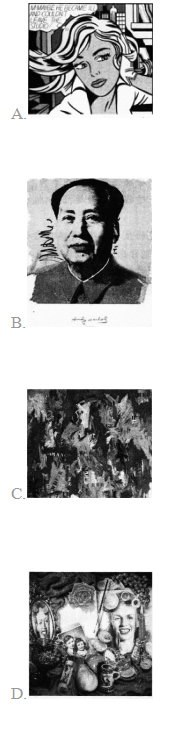 解析 D选项是照相写实主义的作品。A选项是利希滕斯坦的作品;B选项是安迪沃霍尔的作品;C选项是贾斯培尔琼斯的作品《错误开始》,是美国“新达达艺术”的代表人物之一,“新达达艺术”是“波普艺术”的先声,强调日常生活元素。A、B、C选项都是波普艺术。