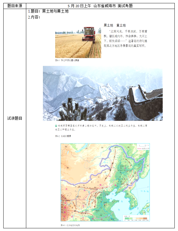 初中地理《黑土地与黄土地》 一、考题回顾 二、考题解析 【教学过程】 (一)导入新课 设置情境,通过展示具有北方特色的冰雕和雾凇...
