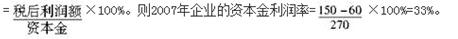 问题 某企业2007年利润总额为150万元,所得税费用60万元,该企业的注册资本为270万元,2007年企业的资本金利润率为(  )。 A.32% B.33% C.35% D.36%