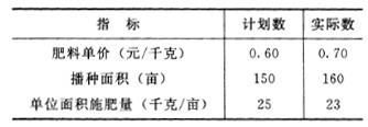 从表格中看出,肥料单价和播种面积的实际数都较计划数高,而单位面积施肥量较低。