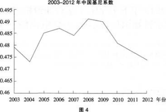 材料一:2003--2012年中国基尼系数。(图4) 注:基尼系数是国际上用来综合考察居民内部收入分配差异状况的一个重要分析指标。基尼系数越大,...