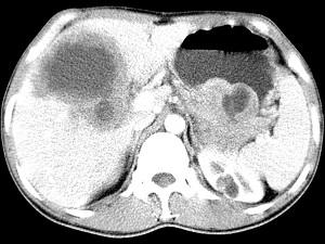 选项 A、肝包虫病 B、原发性肝癌 C、肝转移瘤 D、胃癌肝转移 E、肝脓肿