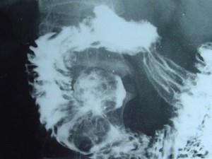 男,55岁,中上腹隐痛多年,剑突下压痛,影像检查如图,最可能的诊断是 ( )A、十二指肠重复畸形B、十二指肠穿孔C、十二指肠憩室 ...