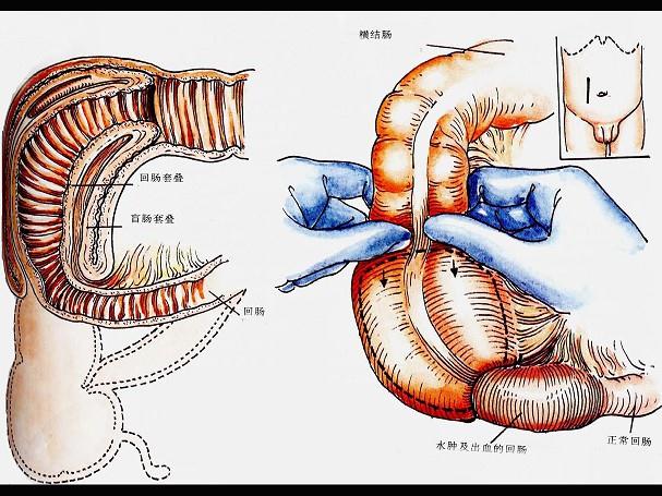 2岁男孩,体胖,阵发性哭闹1天,伴呕吐2次,曾见呕吐物中有蛔虫。腹痛时,右上腹可触及一包块,伴有轻压痛,右髂窝空虚,肠鸣音亢进。病后大便2次,为果酱样,蛔...