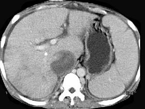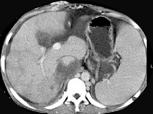 女性,26岁,腹胀不适7月,腹软,肝右肋缘下1cm,影像检查如图,可能的诊断为 ( )A、布加综合征B、脂肪肝C、原发性肝癌D...