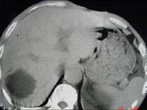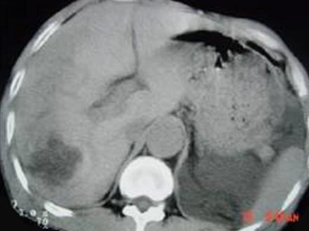 选项 A、肝血管瘤 B、肝包虫病 C、肝癌 D、肝脓肿 E、肝囊肿