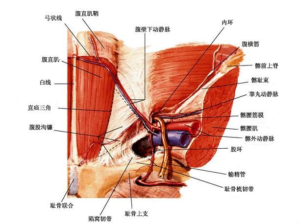 关于直疝三角下列哪项是错误的 ( )A、外侧边是腹壁下动脉B、底边是腹股沟韧C、腹股沟斜疝的内环在其内侧D、内侧边是腹直肌外缘E、是直...