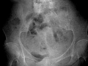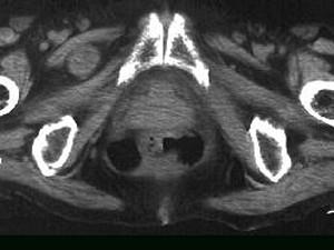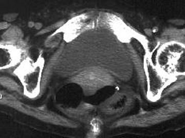 问题 女,69岁,阵发性腹痛伴恶心呕吐7h,10年前因右侧腹股沟斜疝行手术治疗,因急性肠梗阻行CT扫描如图,最可能的诊断是 ( )