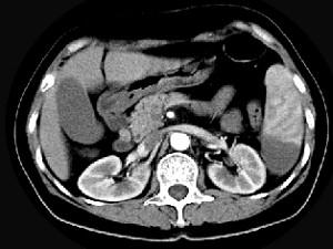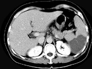 问题 女、54岁,左上腹痛,CT检查如图,最可能的诊断是 ( )