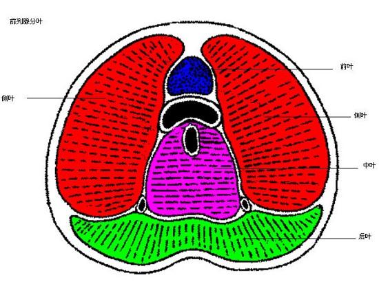 不是前列腺分叶的是 ( )A、周边叶B、两侧叶C、后叶D、中叶E、前叶