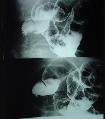 男,70岁,右下腹胀,腹痛,腹泻,影像检查如图,最可能的诊断是 ( )A、结肠结核B、结肠淋巴瘤C、结肠癌D、结肠套叠E、...