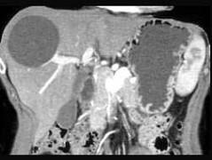问题 女性,45岁,偶有右上腹部胀痛,CT检查见图,最可能的诊断是 ( )