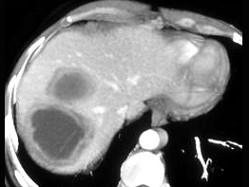 男,41岁,发热、右季肋部疼痛十余天.请根据CT图像,选择最可能的诊断 ( )A、肝囊肿B、肝包虫病C、阿米巴肝脓肿D、肝结核E、肝癌