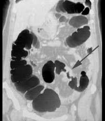 问题 男,55岁,左下腹胀痛、并可触及包块,结合图像,应诊断为 ( )