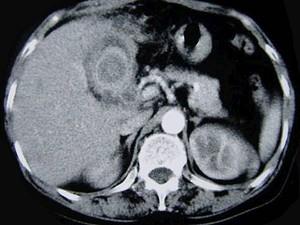 问题 女,55岁,右上腹痛多年,CT检查如图,最可能的诊断是 ( )