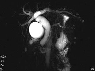 男,48岁,进行性黄疸,发热,腹胀,影像检查如图,最佳的诊断是 ( )A、十二指肠乳头癌B、胰头癌C、胆总管结石D、胆总管癌 ...