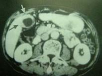 问题 女,58岁,上腹部疼痛半月,无畏寒、发热、黄疸等症状,CT检查如图,最可能的诊断是 ( )