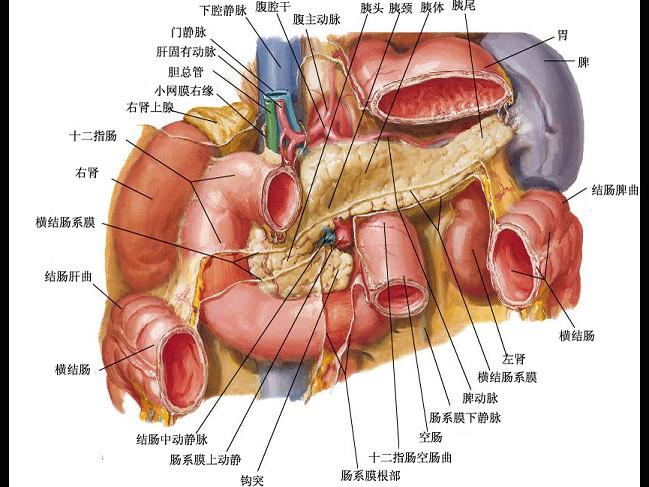 下列胰的描述,正确的是 ( )A、钩突绕至肠系膜上血管的后方B、胰尾伸入胃脾韧带内C、胰颈位于肝门静脉起始部的前方D、胰头的前面有横结肠系...
