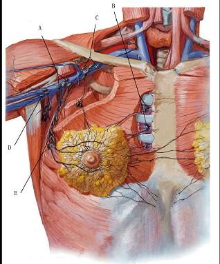 这是一张乳房淋巴回流示意图:部分乳房内侧的淋巴液通过肋间淋巴管流向图中何处淋巴结 ( )A、DB、EC、BD、CE、A