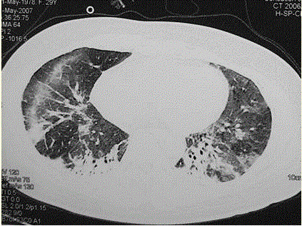 患者女,29岁。间断干咳10年余,加重4个月,伴进行性呼吸困难1个月。病程中出现双手及双足非凹陷性肿胀、双侧膝关节及双侧肘关节对称性肿痛,面部出现细小红...