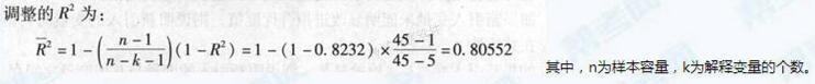 在n=45的一组样本估计的线性回归模型中,包含有4个解释变量,若计算的R2为0.8232,则调整的R2为()。A 0.80112 B 0.80552 ...