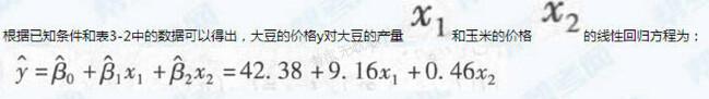 为确定大豆的价格(y)与大豆的产量(x1)及玉米的价格(x2)之间的关系,某大豆厂商随机调查了20个月的月度平均数据,根据有关数据进行回归分析,得到表3-...