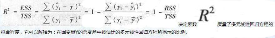 解析 决定系数是多元线性回归平方和占总平方和的比例,计算公式为: