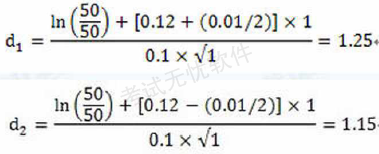问题 假设IBM股票(不支付红利) 的市场价格为50美元,无风险利率为12%,股票的年波动率为10%,求执行价格为50美元、期限为1年的欧式看涨期权和看跌期权的理论价格。