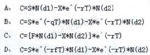 解析 选项A为布莱克-斯科尔斯期权基本定价公式;选项C为期货期权定价模型;选项D为货币期权定价模型。