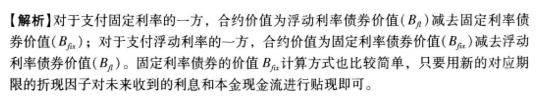 选项 A.对于支付浮动利率的一方,合约价值为浮动利率债券价值 B.对于支付固定利率的一方,合约价值为浮动利率债券价值减去固定利率债券价值 C.对于支付浮动利率的一方,合约价值为固定利率债券价值减去浮动利率债券价值 D.浮动利率债券的价值可以用新的对应期限的折现因子对未来收到的利息和本金现金流进行贴现