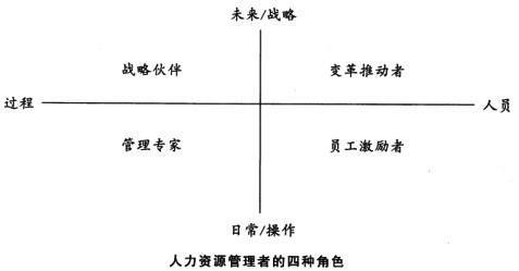 问题 密歇根大学的尤里奇教授在1999年将人力资源管理者扮演的角色划分为四种类型,其中关注人员、着眼于未来的角色是()。