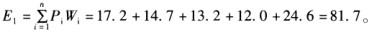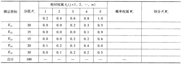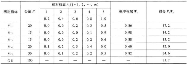 (3)用各测定指标分值(绝对权数Pi)乘以各自概率权数(Xi),即可求出要素总分: