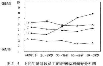 图5-4是某公司不同年龄段员工对可供自由选择的薪酬福利的偏好的调查结果。