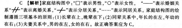 问题 社会工作者小王在入户探访时了解到,李婆婆今年72岁,丈夫去世多年,与女儿女婿住在一起,日常起居由女儿和女婿照顾。根据上述资料,小王绘制的下列家庭结构图中,正确的是()。