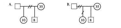 问题 阿丽今年35岁,因性格不合,与丈夫离婚。目前,她一个人带着8岁的儿子在城市打工,把10岁的女儿留给了丈夫。根据上述案例介绍,社会工作者绘制的家庭结构图中正确的是()。