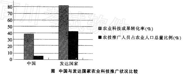 问题 阅读下列材料,回答下列问题。 新世纪以来9个中央一号文件连续锁定“三农”。 材料1:9个中央一号文件突出“三农”的重中之重地位,从提高农业综合生产能力到推进社会主义新农村建设,从促进农业稳定发展农民持续增收到加大统筹城乡发展力度,从加快水利改革发展到推进农业科技创新,不断完善强农惠农富农政策体系,加快了城乡社会一体 化发展。 材料2:我国基层农技推广机构存在专业人员流失、人员老化、推广能力不强等问题。2012年5月13日,中国科学院中国现代化研究中心发布《中国现代化报告2012:农业现代化研究》。 报告称,以农业增加值比例、农业劳动力比例和农业劳动生产率三项指标进行计算,截至2008 年,中国农业经济水平与英国相差约150年,与美国相差108年,与韩国相差36年。中国农业劳动生产率约为世界平均值的47%,约为高收入国家平均值的2%,约为美国和日本的1%。至此,中国农业发展呈现出“一条腿长”(谷物单产高)和“一条腿短”(劳动生产率低)的尴尬境地。尤其在农业科技推广方面,与发达国家相比存在着明显的差距。 材料3:2012年中央一号文件强调,农业科技具有公共性、基础性、社会性,政府要发挥主导作用,大幅度增加农业科技投入。要采取引导高等学校,科研院所等开展农技服务,培育和支持农业社会化服务组织;完善教育科技培训政策,造就新型农业科技人才队伍;开展农村实用人才培训,培育新型职业农民等措施,提升农业技术推广能力。 结合材料1和材料3,我国采取措施提升农业科技推广能力,原因在于: A.农业的根本出路在科技 B.科技人才是技术产生的源泉,是技术传播、应用的载体 C.加强对农民科技培训,能够直接提髙科技成果转化率 D.农村经济发展的关键是农民科技意识的提高