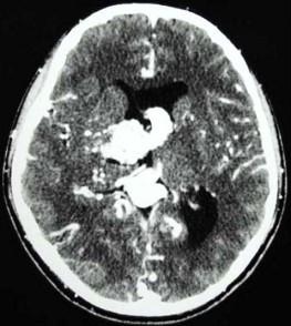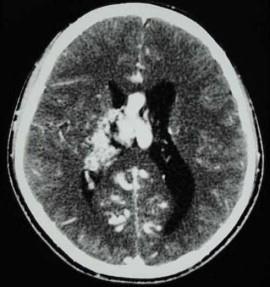 问题 男,32岁,头痛、癫痫,查体发现视乳头水肿,CT检查如图,最可能的诊断为()