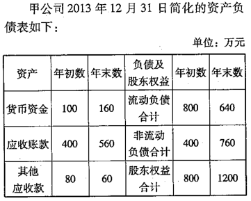 要求:根据上述资料,为下列问题从备选答案中选出正确的答案。三、甲公司 2013 年资产报酬率是()A. 6.7% B. 12.38% C...