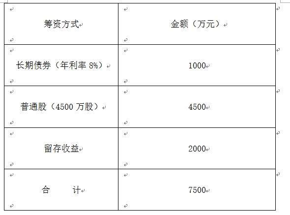 相关内容:公司,资金,结构,如下,生产,发展,2500万元,现有,两个,方案,1000万,普通股,市价