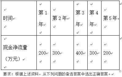 问题 资料某股份有限公司现有资金总额 4 400 万元,均为权益资本,其中用于非流动资产上的资金为 4300万元。现拟进行一项投资额为 600 万元的投资项目(年初一次投入) , 需要新增资金 600 万元,具体筹资方案如下: (1)发行面值为 500元、年利率12%、5年期的公司债券,预计发售价格为500元,筹资总额为500万元,筹资费用忽略不计。 (2)其余资金按10%的年利率向银行借款。 (3)公司所得税率为30%。 (4)投资项目各年现金净流量为: 假设新增筹资前资金成本为 12 % ,则筹资后加权平均资金成本是( )。