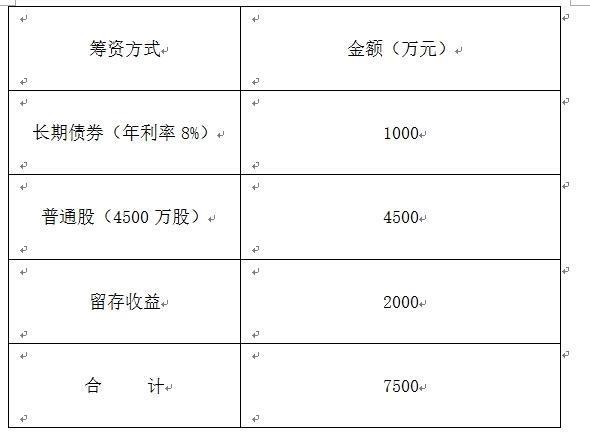 相关内容:公司,资金,结构,如下,生产,发展,2500万元,现有,两个,方案,1000万,普通股,市价