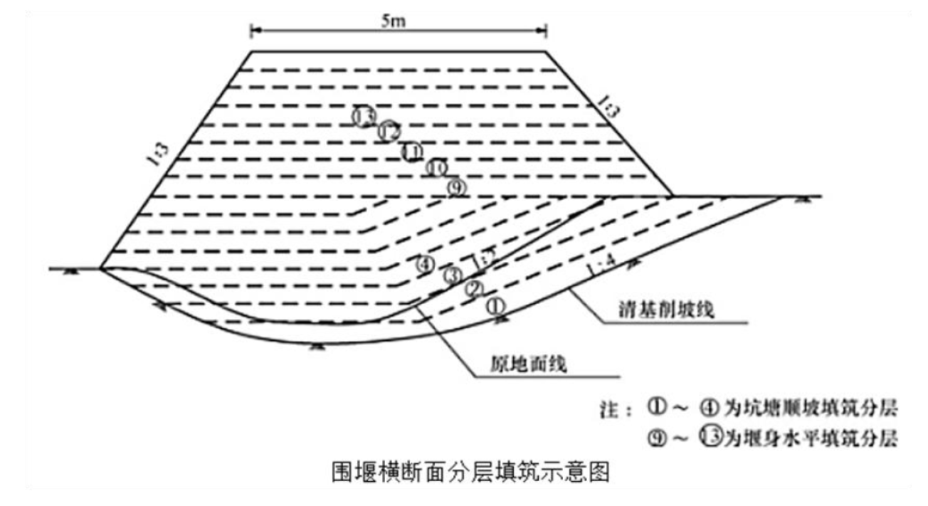 问题 背景资料:临南段河道疏浚工程,疏浚河道总长约5km,设计河道底宽150m,边坡1∶4,底高程7.90~8.07m。该河道疏浚工程划分为一个单位工程,包含7 个分部工程(河道疏浚水下方为5个分部工程,排泥场围堰和退水口各1 个分部工程)。其中排泥场围堰按3 级堤防标准进行设计和施工。该工程于2012 年10 月1 日开工,2013 年12 月底完工。工程施工过程中发生以下事件: 事件1:为加强工程质量管理、落实质量责任,依据《关于贯彻质量发展纲要、提升水利工程质量的实施意见》(水建管[2012]581 号),项目法人要求各参建单位落实从业单位质量主体责任制等“四个责任制”。 事件2:排泥场围堰某部位堰基存在坑塘,施工单位进行了排水、清基、削坡后,再分层填筑施工,如下图所示。 事件3:河道疏浚工程施工中,施工单位对某单元工程进行了质量评定,如下表所示。 事件4:排泥场围堰分部工程施工完成后,其质量经施工单位自评、监理单位复核后,施工单位报本工程质量监督机构进行了备案。 事件5:该河道疏浚单位工程完工后(本工程为大型水利工程),项目法人组织监理单位、施工单位成立了工程外观质量评定组。评定组由4 人组成,其中高级工程师2 名,工程师1名,助理工程师1 名。竣工验收主持单位发现评定组织工作存在不妥之处并予以纠正。 事件6:本工程建设项目于2013 年12 月底按期完工。2015 年5 月,项目法人对本工程进行了竣工验收。验收委员会由竣工验收主持单位、设计单位、监理单位、质量和安全监督机构、地方人民政府有关部门、运行管理单位的代表及相关专家等组成。 问题: 1.事件1 中的“四个责任制”,除从业单位质量主体责任制外,还包括哪些内容? 2.根据《堤防工程施工规范》SL 260—2014,指出并改正事件2 图中坑塘部位在清基、削坡、分层填筑方面的不妥之处。 3.根据《水利水电工程单元工程施工质量验收评定标准—堤防工程》SL 634—2012,指出事件3 表中A、B、C、D 所代表的名称或数据。 4.根据《水利水电工程施工质量检验与评定规程》(SL176—2007)有关规定,改正事件4中的不妥之处。 5.根据《水利水电工程施工质量检验与评定规程》(SL176—2007)指出事件5 中工程外观质量评定组织工作的不妥之处,并提出正确做法。 6.根据《水利水电建设工程验收规程》SL223—2008,指出事件6 中竣工验收中不妥?说明理由。
