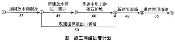 2.由于事件1,改建溢洪道出口翼墙工作5月15日完成,不影响工程安全度汛目标,但事件1导致工期延误5天。