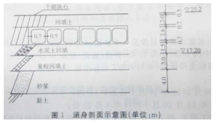 背景资料: 某立交地涵工程主要由进口控制段、涵身、出口段等部分组成,涵身共有 23 节,每节长 15m,涵身剖面 如图 1 所示 涵身地基采用换...