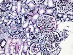 问题 阅读下述三张狼疮性肾炎病理图片后,其病理诊断为 ( )